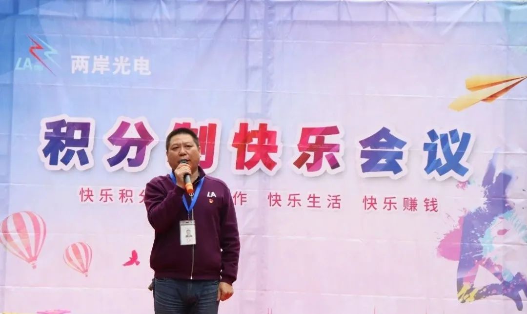 活動(dòng)最后,兩岸光電李忠總經(jīng)理對(duì)今天的快樂(lè)會(huì)議進(jìn)行了講評(píng),首先肯定了此次活動(dòng)組織籌備的工作人員,表?yè)P(yáng)一線自愿報(bào)名的主持人員,分享積分運(yùn)行優(yōu)秀人員事跡,勉勵(lì)大家發(fā)自?xún)?nèi)心的重視積分,發(fā)自?xún)?nèi)心的掙積分,期望兩岸家人激情澎湃,向更高的目標(biāo)努力。